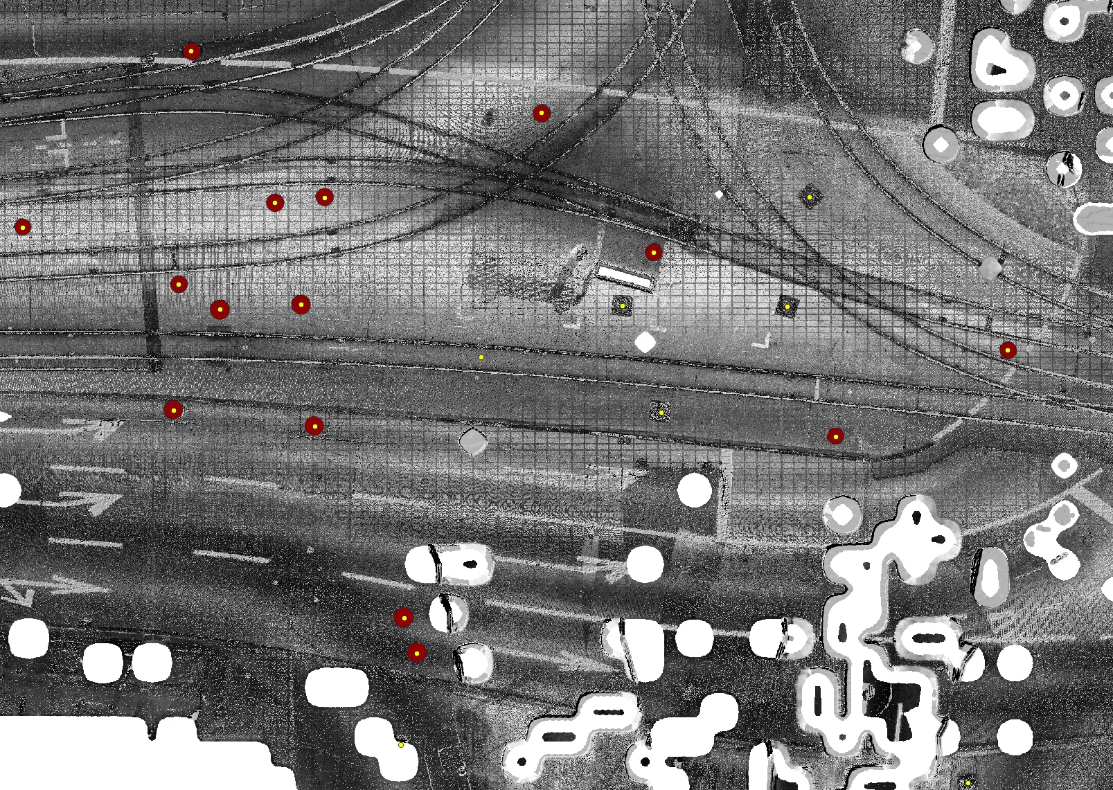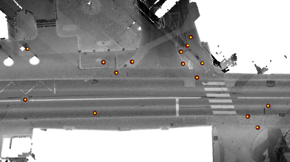 It was decided to go with option 2. To create the initial ground truth in 3D world coordinates, called ortho GT, an RGB aerial view of the same period, the street view images and ground LiDAR intensity from mobile mapping acquisition were used. The annotation process was performed on these resources by domain experts. The LiDAR acquisition is only used to ease the annotation process and limit occlusion by objects over the street. It is not required during the training and inference steps. Please refer to Appendixes.A for detailed process.